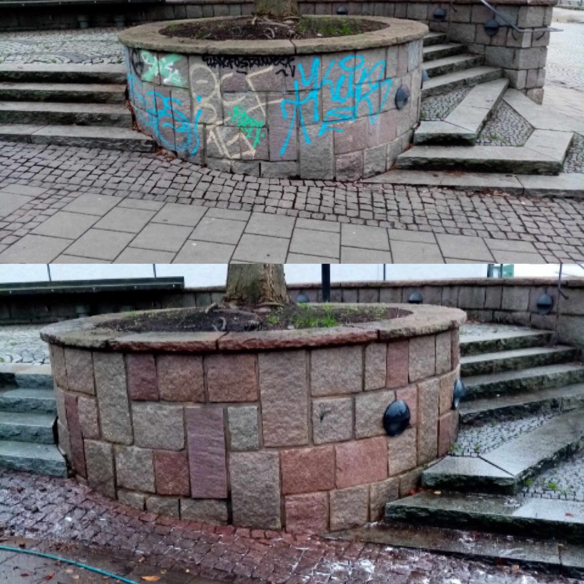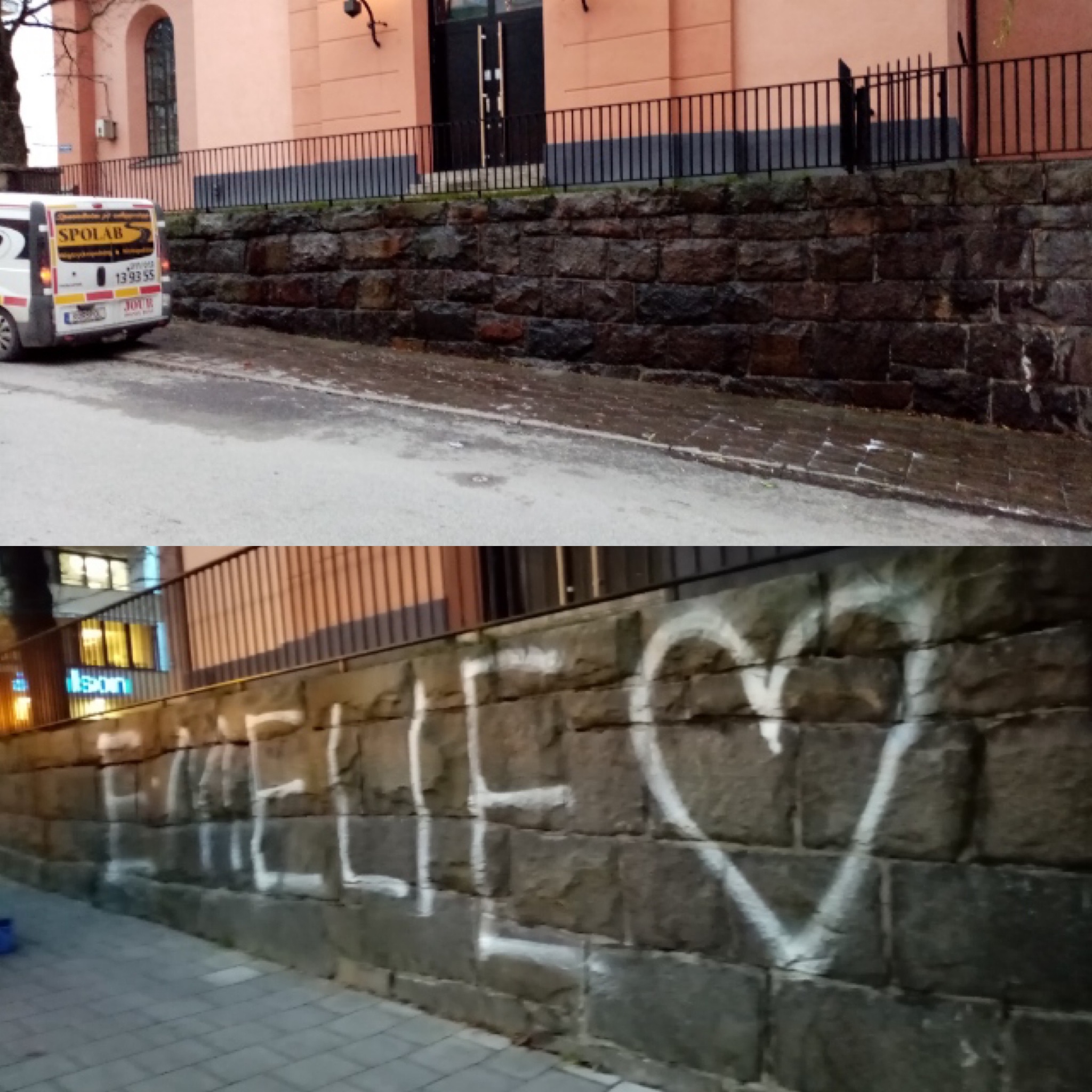 Vi utför både små och stora klottersaneringar. Olika färger på olika typer av ytor kräver inte samma lösning varje gång. Om detta har vi kunskapen.